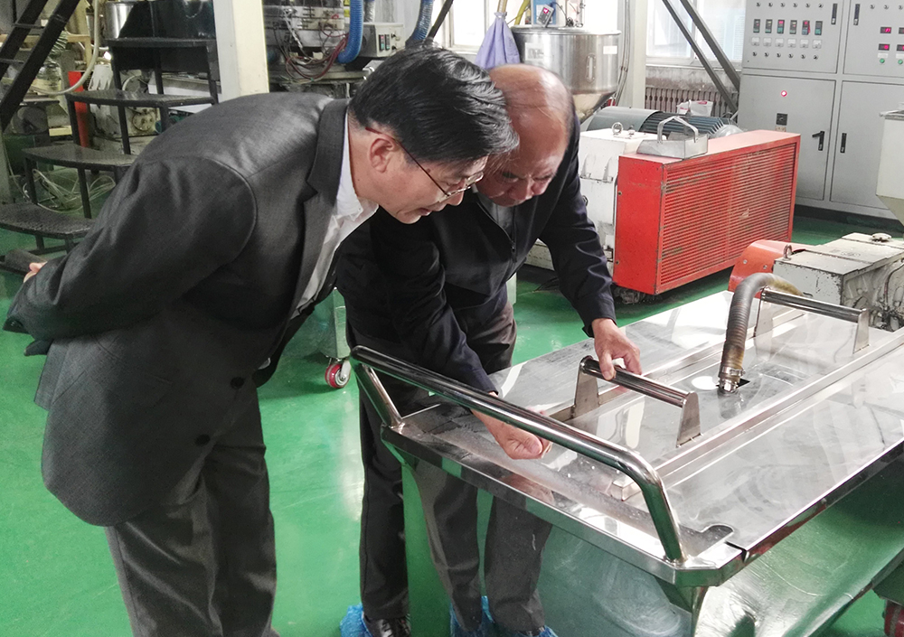Liu Hongwen, Chairman of Shenyang Anti-rust Packing Material Co., Ltd., Liu Yanxia, General Manager, and Bai Fang, Director of the Technical Center accompanied Professor Liu Lizhi to visit the company's production line and introduced the company's production scale and flagship products in detail.