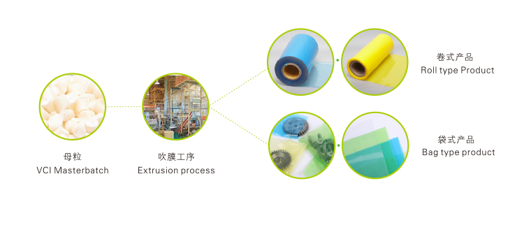 4.母粒添加比例低。適用于多種金屬防銹包裝。